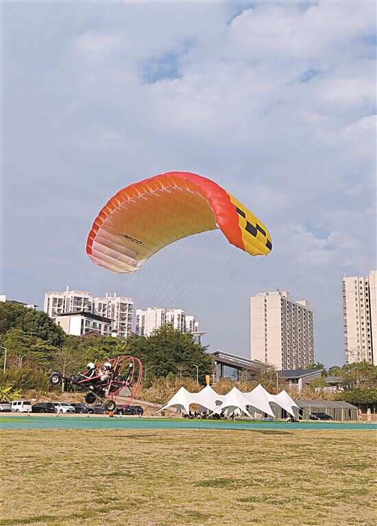■广州从化时空亿航飞行基地游客正体验动力伞。通讯员供图 |