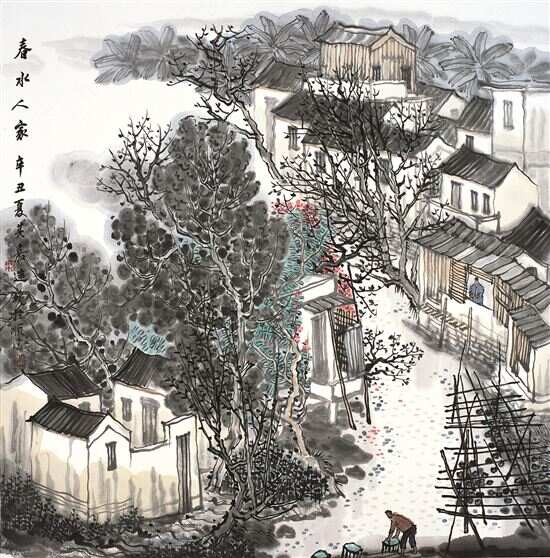 “外师造化,中得心源”值得再三品味 顺德水乡画的出现,在一定程度上体现了岭南文化的长期熏陶和浸润,更体现了水乡的安宁富足和资源丰茂,地域条件优越与人文基础的深厚。顺德水乡画起源于何时?当前面临的现状如何?这是一个非常值得回顾和探讨的问题。 1 水乡画的出现是岭南画派的发展和延续 从现有资料看,最早以岭南水乡景物题材入画的,我们看到黎雄才创作于1932年的《潇湘夜雨》、创作于1943年的《蓉湖月色》、创作于1961年的《广州郊区一景》;关山月作于1960年的《南国水乡》、创作于1962年《榕荫曲》《春江水暖》《瑞鹤图》;林丰俗创作于1972年的《公社假日》《石谷新田》、创作于1979年的《大地回春》以及麦国雄、王维宝在70年代末、80年代初创作的《水巷》《水乡金秋》等作品。上述诸作品都不同程度地表现了华南地区,尤其是珠三角水乡的人文风情,从而使传统的山水画题材从名山大川扩展到平凡而亲切的乡村生活。可以说,这便是后来顺德水乡画之所以能诞生和发展的先导和蓝本。也由于上述作品的多位作者都与岭南画派有着直接和间接的师承关系,因此,也可以说,水乡画的出现和水乡画派的形成实质上也是岭南画派的发展和延续。 上世纪八十年代初,顺德容桂一班年龄相仿的青年画家,怀着对家乡田园风物的特殊兴趣,有意识地发掘和提炼出水乡风物中典型的物象,并且在技法表现上进行了大胆的探索和创造,一时间,大批的水乡画走进省城,走向全国,走出海外。水乡画由此而引起社会各界的关注。海内外有识之士对此种乡土味十足的画风和作者群体誉之水乡画派。 对于水乡画的异军突起,业内研究人员关注了几个有趣的问题:一是为什么顺德容桂这么小的地方有这么多青年在自发地画这种带有浓烈乡土味的画?二是为什么这些人大都没接受过学院的正规训练而能画出这些情景交融的画?三是这些画虽然技法上并不成熟但却很有创新精神?很多论者从不同角度对上述问题作了很多方面的探讨和论证,虽然不乏中肯和难得的见地,但大多数都未能将其当作一种现象而认为只是个案去分析,亦未与岭南文化的渊源、文化意识的觉醒以及经济发展等因素加以综合观照和思考,仅仅认为,水乡画之所以取得一定的知名度,是由于水乡画的出现是在当时画坛颇为沉寂的情况下,占了个好的时机而显得非常瞩目。这当然是未能讲清其中的本质问题,因此也不可避免地失之偏颇。 任何画派的形成,都必定有其特定的社会环境和人文因素。当年岭南画派的出现,是在“复古成风”了无生气的画坛打出“笔墨当随时代”的旗帜,反对闭门造车,反对对身边事漠不关心。而顺德水乡画的诞生,是与改革开放息息相关,改革的清风使他们感受到从未有过的欢快喜悦,各行各业都焕发出无穷生机和创造力。 2 水乡画首先要解决“立意”问题 水乡画从上世纪80年代的初步形成发展到今天,经过了四十多个春秋,其中有过追摹自然的冲动,有过理性观照和整合自然景观的描写,更有过艺术地表现心中诗情的尝试。也就是说水乡画基本上经历了三个不同的探索阶段: 其一是七十年代末到八十年代中,以1983年第一次在广东省博物馆举办“彩笔乡情画展”为标志,大致可以称之为初创阶段。这段时间参与创作的骨干作者有十多位,作品反映的内容对象比较直观,作品制作总体比较粗糙,但明显地透现出一股生气,也很富于创造意识。一部分作品用现代眼光看也有其一定的学术价值。 其二是上世纪80年代中到90年代中,是属于发展、巩固阶段,作者队伍不断扩大,一些作者探索调整自己的发展方向,一些作者的作品已是慢慢趋向成熟,显示出对形式语言的自觉。 其三是90年代中到现在,是属于积累和多元发展的阶段。从发展速度而言,这一阶段不如上一阶段之纵向发展来得快,但显示出更加稳健,向更宽广的角度、更加理性的横向发展而形成多种面貌。 如果说,水乡画经过四十多年的发展,基本上形成一定的风格特征和技法形式,那么具体可以从以下几个方面加以分析。 从气质面貌上看,大部分的水乡画都偏于清秀灵巧,近似宋词中婉约一派,少见雄强劲健如苏东坡的豪迈一格,笔酣墨畅的发挥不多,小情小景的居多,大场面、大气势的少见。习惯于写实而虚拟的表现不够,工整细致有余,率意概括精练的不多……也许,这既是目前水乡画的特色同时又可能制约水乡画的发展与提高。 从形式上看,装饰性在水乡画中起着不可忽略的作用,就创作者而言,可以习惯性地地运用装饰手法,使画面无论局部和整体都很容易地透现出一种装饰唯美的效果。我认为,装饰性从形而上来说是一种审美,怎样把握好装饰的“度”是颇值得探讨的。过于强调装饰,势必削弱物象本体自然生动的属性,很容易在不知不觉间靠向规律化、秩序化甚至坠向公式化的工艺装饰;相反,一味反对装饰,为求原始的自然野性也容易流于自然主义和缺乏美感。 从表现技法上看,基本上可以归纳为两个类型。一类是以借鉴传统笔墨为旨向的,包括对继承传统中有所发展的近现代各家各派的黄宾虹、李可染、傅抱石、陆俨少、钱松岩、关山月、黎雄才等的技法经验加以总结吸收学习,并为我所用表现于客观现实的乡村美景。另一类则是以西方水彩的色、光、水影画法结合中国画的构图造型加上工笔画的勾染,形成一种
