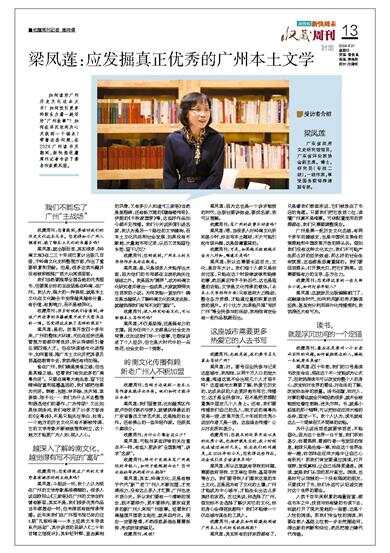 梁凤莲:应发掘真正优秀的广州本土文学