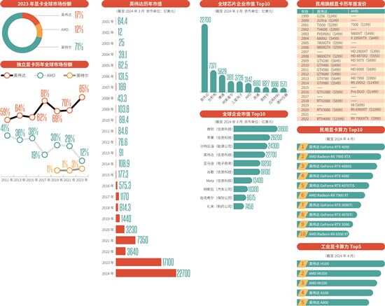 3 AI时代到来了 显卡成了评价算力的标准 究竟是什么让英伟达越飞越高? “挖矿”虽说帮英伟达赚了不少钱,但再怎么说,“挖比特币”也不能算英伟达的主营业务。2022年,加密市场崩塌之后,英伟达的股价也暴跌了46%。不过,英伟达的整体趋势还是上扬。对英伟达来说,“挖矿”可能顶多只能算是个插曲,真正让英伟达赢麻了的是人工智能。 如前文所说,显卡具备大量并行计算的能力,这就特别适用于深度学习和机器学习。人工智能不就是让它一直学学学吗?所以,让显卡去进行这种并行计算能力就再合适不过了。同样去训练一个大语言模型,GPU大概只需要CPU 4%的成本和1.2%的电力就能完成。换言之,在进行深度学习方面,CPU和GPU根本不在一个量级上,而这是它们的底层结构决定。 当然,大家也不是一开始就发现显卡能拿来搞人工智能。那么,人们是什么时候发现显卡能拿来搞人工智能的?这种转变和发现发生在2012年,当时业内有一个非常知名的计算机竞赛,大家都在比谁的算法训练出来的程序能更好地识别图片里的内容,其中第2名到第4名的识别错误率都在25%-30%,但第一名的错误率只有16.4%。第一名的秘诀是什么?答案就是英伟达,他们一直用英伟达的显卡训练自己的程序。 现在,所有人都明白,人工智能可能是引发新一次科技革命的巨大产业,而几乎所有的人工智能模型训练都需要显卡。可以这么说,人工智能的基础就是算力,显卡就是人工智能的土壤。正因于此,显卡几乎成了评判一家公司算力的唯一标准,拥有更多的显卡,就能具备更多的算力。 就拿现在最火的ChatGPT来说,它就是3万多块不同显卡训练出来的。据相关媒体报道,ChatGPT的算力大概相当于1万块A100的算力,也就是光这一个项目,投资方就需要花上亿美元来买显卡,这也是为什么从2022年10月开始,英伟达的市值在半年时间内就飙升了三四倍。到了这一步,卖显卡已经不再是单纯的商业问题了。正所谓“大力出奇迹”,只要有了足够的算力,那么任何地方都可能长出一个类似ChatGPT这样的东西。 正因于此,无论是英伟达的A100、H100乃至A800,还是AMD的MI100、MI200,都成了“遥不可及”的产品。不仅各大公司卖显卡受到了各种限制,连普通玩家买显卡也有各种约束。在这种情况下,显卡卖得越来越贵,真的不奇怪。 尽管如此,当地时间4月19日,美国三大股指收盘涨跌不一,标普500指数和纳指均录得连续第六日下跌,热门科技股普跌,英伟达跌10%,市值跌破2万亿美元。 涨知识 显卡(Graphics Card) 显卡又称图形显示加速卡,是计算机的重要组成部分,承担输出显示图形的任务,对喜欢玩游戏和从事专业图形设计的人来说,显卡极具重要性。 从类别上来说,显卡分为独立显卡和集成显卡。独立显卡是一块单独的板卡,需占用主板的扩展插槽,因此会提升电脑的功耗,但可以有效提升画面的显示效果;集成显卡是将显示芯片、显存及其相关电路都集成在主板上,与其融为一体的元件,缺点是画面显示效果一般,但胜在经济实用。 目前,市面上还有一种原理上类似于集成显卡的核芯显卡,但核芯显卡和传统意义上的集成显卡并不完全相同,其显示效果更好,但耗能更少。 从品牌上来说,显卡一般分为A卡(AMD)、N卡(英伟达)和I卡(英特尔)。由于英特尔的独立显卡品类较少,所以I卡一般指的都是集成显卡或者核芯显卡。不过,市面上的大部分电脑并不配备独立显卡,因此,I卡反倒是市场份额最高的显卡。 数据来源 中关村在线、云易科技、QUICK Factset、英伟达、AMD