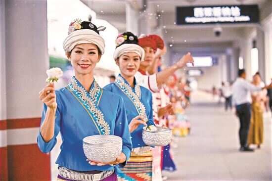 ■在中老铁路西双版纳站,工作人员欢迎乘客。 |