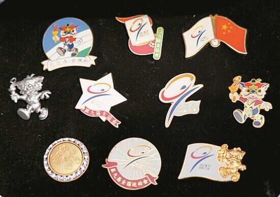 ■以九运会会徽和吉祥物制作的各类徽章。 |