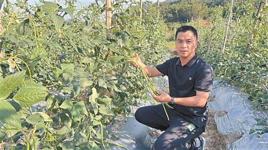 ■杜国龙全程参与了荒地变基地,如今田地里豇豆正丰收。 |