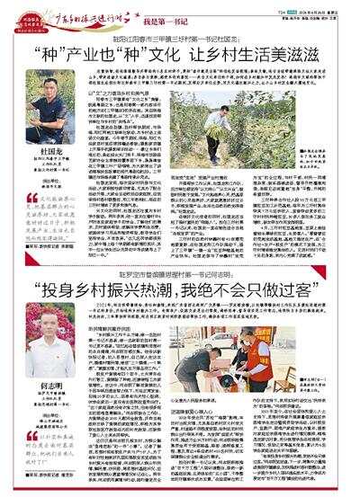 驻阳江阳春市三甲镇三圩村第一书记杜国龙: 注重扶智,经他谆谆教导并帮助的6名农村学子,秉持“读书就是出路”的信念发奋图强;崇尚文教,他甘当纽带邀珠海文坛大家走进山乡,带来连场文化盛宴;亲自参与复耕,感受丰收的喜悦……来自文化单位的干部,如何在乡村振兴中发光发热?珠海市文联的帮扶干部杜国龙在担任阳江阳春市三甲镇三圩村第一书记期间,发挥后方单位优势,用文化灌注振兴之力,让小山乡村发生翻天覆地变化。 以“文”之力增添乡村和美气息 阳春市三甲镇素有“文化之乡”美誉,既是粤剧之乡,也是阳春第一部内容详尽的地方志《三甲镇志》的所在地。来自珠海市文联的杜国龙,从“文”入手,迅速找到帮扶单位与乡村的“共鸣点”。 杜国龙在驻镇、驻村帮扶期间,与珠海、阳江两地文联单位联动,为乡村送上连场文化盛宴。今年春节期间,珠海、阳江书法家到村里即席挥毫送春联;摄影家到镇上开展手机摄影培训活动……最让乡亲们难忘的,是红线女关门弟子、珠海市戏剧曲艺家协会主席赖琼霞率团下乡,袅袅南音在三甲镇三叶广场唱响,为大家演出了讲述精准扶贫故事的现代粤剧《家访》。三甲镇还与珠海共建了粤剧传承示范点。 杜国龙发现,每次组织村民参与文化活动,大家积极性都非常高,尤其为了配合活动开展,大家会主动收拾自家庭院,自觉保持村容村貌整洁,和三年前相比,现在的三圩村增添了更多和美气息。 兴文化的同时,杜国龙还注重为乡村学子鼓劲。两年多来,他一直关注着村中6户防返贫家庭学子的学业,了解他们的需求,及时提供帮助,或解决学费和生活费,或提供学习用品和物资帮助,教导学生们坚持学业,不言放弃。“这几名同学都很努力,家中墙上每个学期都有新增的奖状,其中一位女学生还以优异的中考成绩考上了阳江一中。” 荒地变“宝地” 发展产业村增收 开展帮扶工作以来,杜国龙和工作队、后方单位都坚持“以文润心”“以文兴业”,鼓励村民敢于发展。“文化能滋养心灵,把基层群众的心灵滋养好,大家就愿意好好过日子,积极发展产业,生活也自然而然变得滋润。”杜国龙说。 在做好文化使者的同时,杜国龙还当起了强村富民的“领路人”。担任三圩村第一书记以来,杜国龙一直在物色适合当地“生根发芽”的产业。 三圩村的自然村林蘸村有42亩撂荒地要复耕,在杜国龙和工作队推动下,搭上了三甲镇“一镇一业”豇豆种植基地的产业快车。杜国龙参与了林蘸村“变荒为宝”的全过程,与村干部、村民一同清理杂草、联系器械进场、督导开挖灌溉沟渠,亲眼见证闲置地“变身”平整、开阔的希望田野。 三圩种养合作社入股55万元到三甲镇豇豆加工示范基地,每年为三圩村集体带来7万元经济收入,直接带动更多的三圩村村民种植豇豆,30多人参加务工就业增收,联农带农作用发挥明显。 4月,三圩村豇豆基地里,豆架上垂挂着细长翠绿的豇豆,长势喜人。“看着曾经的荒地变成基地,基地又稳定生产,在‘合作社+农户+脱贫户’的模式下发展,为三圩村增添稳定集体收入。见到村民们干劲十足的身影,我内心充满了成就感。” 杜国龙 驻阳江阳春市三甲镇工作队队员 兼驻三圩村第一书记 派出单位: 珠海市文联 “文化能滋养心灵,把基层群众的心灵滋养好,大家就愿意好好过日子,积极发展产业,生活也自然而然变得滋润。” ■采写:新快报记者 李斯璐