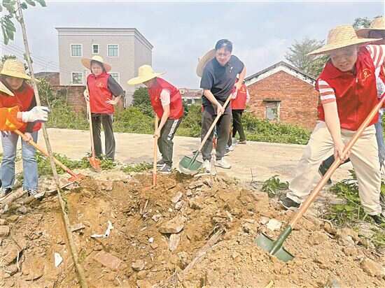 ■刘炜(黑衣)参与绿美乡村植树活动。 |