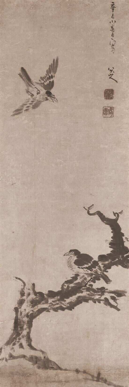 ■八大山人《枯木双禽》,127.5 x 43.2 cm,图片来自佳士得 |
