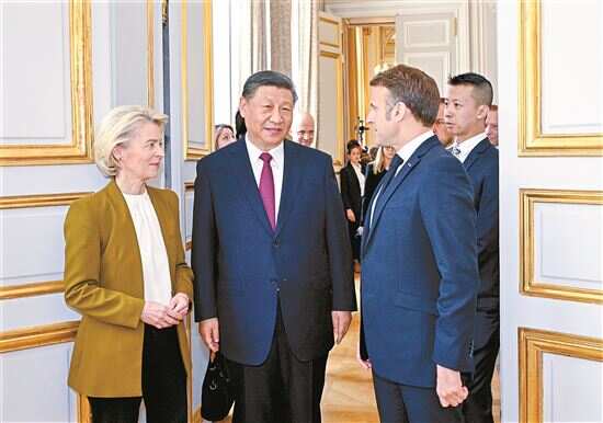 ■当地时间5月6日上午,国家主席习近平应邀在巴黎爱丽舍宫同法国总统马克龙、欧盟委员会主席冯德莱恩举行中法欧领导人三方会晤。新华社发