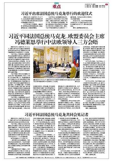 习近平同法国总统马克龙、欧盟委员会主席冯德莱恩举行中法欧领导人三方会晤