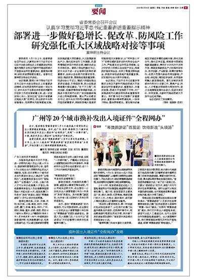 近日,国家移民管理局宣布5月6日起实施六项便民利企出入境管理政策措施。其中,在广州、深圳、珠海等20个城市试点实行换发补发出入境证件“全程网办”,实现“一次都不跑”。日前,换发补发出入境证件“全程网办”攻略出炉。 政策还提到,参加“琴澳旅游团”人员可以多次往返琴澳。6日早上,由16人组成的“琴澳旅游团”首发团饮得新政“头啖汤”,开始为期3天2晚的琴澳跨境游旅程。 广东三地市民可享新政 为服务促进高水平对外开放,进一步便利内地人员出入境,4月28日,国家移民管理局发布公告,宣布5月6日起出台六项便民利企的出入境新政,包括:在北京等20个城市试点实行换发补发出入境证件“全程网办”;赴港澳商务签注实行“智能速办”“全国通办”;北京、上海六类人才可以申办赴港澳人才签注;持赴港澳商务签注人员在港澳停留期限由7天延长至14天;签发赴澳门1年多次“其他”类签注;参加“琴澳旅游团”人员可以多次往返琴澳。 值得注意的是,北京、天津、沈阳、哈尔滨、上海、南京、杭州、宁波、合肥、厦门、济南、青岛、郑州、广州、深圳、珠海、重庆、成都、昆明、西安20个城市16周岁以上户籍居民(国家工作人员和现役军人除外)申请换发补发普通护照、往来港澳通行证、往来台湾通行证,可以通过国家移民管理局政务服务平台网上提交申请,实现“一次都不跑”。户籍地公安机关出入境管理机构对符合申请条件、申请材料齐全且符合法定要求的,在7个工作日内审批并签发证件。 “琴澳旅游团”7日内可多次往返横琴澳门 新政还提到,内地居民赴澳门参展、就医或从事演艺等活动的,可以凭有关证明文件,在全国任一公安机关出入境管理窗口申办1年多次“其他”类签注。其中赴澳门就医的,允许有1至2名陪护人员申办同类型签注。 此外,参加“琴澳旅游团”的内地居民,可以凭参团材料,在全国任一公安机关出入境管理窗口申办标注“琴澳旅游”的团队旅游签注。参团人员入境澳门后,7日内可以“团进团出”方式经横琴口岸多次往返横琴与澳门。 【链接】 “琴澳旅游团”首发团 饮得新政“头啖汤” 新政的推出给内地居民出境旅游带来极大的便利。5月6日,首支由16名人员组成的“琴澳旅游团”,从横琴口岸顺利出境前往澳门,开始为期3天2晚的琴澳跨境游旅程,其间将两次经横琴口岸往返琴澳两地。 上午10时,首发团旅客经边检人工查验通道和合作快捷查验通道顺利通关前往澳门。据介绍,首发团团员主要来自广东、湖北、陕西、江西等地,将游览澳门的大三巴、大炮台、路环渔村、威尼斯人等知名景点以及横琴的长隆秀。 “我在网上看到消息后,第一时间就打电话报名参团了,以往我们去澳门玩基本都是当天返回,总觉得不够尽兴,现在跨境游行程更加灵活方便,我对接下来的旅途更加期待!”首发团中来自湖北的旅客徐女士说。 “横琴和澳门均有丰富的文旅资源,之前因为签注次数原因,绝大部分内地旅客只能选择先澳门后横琴或者先横琴后澳门的单向旅游线路,需要对旅行时间、住宿、景点游玩顺序等有较高的规划。”首发团导游甄俊杰说,“有了这个政策之后,只要以‘团进团出’的方式,旅客7天内可多次往返琴澳两地。旅行社就可以制定丰富的游玩线路,也可根据旅客需求量身定制方案,极大方便了游客。” 珠海边检总站横琴边检站副站长曾向表示,“琴澳旅游团”人员多次往返琴澳将有效助力澳门经济适度多元发展和“琴澳一体化”建设。“为便利‘琴澳旅游团’通关,我们已升级出入境查验系统,游客可以经人工通道过关,也可以选择合作快捷查验通道通行。出入境高峰时段,我们将根据客流情况及时加开查验通道,保障‘琴澳旅游团’顺畅通关。” 换补发出入境证件“全程网办”攻略 ●哪些证件可以网上申请换发补发? 目前有3类证件可以在网上申办:普通护照、往来港澳通行证和往来台湾通行证。只要申请人的证件符合有效期不足6个月、损毁、遗失、被盗或者普通护照签证页用完四种情形之一,即可在线申请换发补发。 ●哪些人可以在网上申办出入境证件? 网上申办出入境证件需满足3个条件:试点城市16周岁以上的户籍居民;曾经申领过上述出入境证件;证件仍在有效期内且之前办证时留存过本人的指纹。此外,国家工作人员和现役军人仍需前往现场申办。 ●如何在网上申办出入境证件? 申请人可以使用电脑或手机登录国家移民管理局政务服务平台,包括官方网站、移民局APP、微信和支付宝小程序;通过“实人认证”后,进入“证件换补发网上申请”功能,根据系统提示要求录入个人资料信息,并上传符合标准的制证照片、手写签名照片以及本人居民身份证正反面照片,即可在网上提交申请。 ●如何缴费,多久后可拿到证件? 对经人工审核发现提交的信息资料需要完善的,系统会及时提示申请人修改后重新提交。人工审核完成后,系统会通过短信和APP提醒通知申请人线上缴纳证件工本费。 缴费完成后,将在3个工作日内完成制证并邮寄至申请人指定地点,邮费统一采取到付方式。对申请人网上申办时选择线下领取的,可以到户籍地公安机关出入境管理机构现场领取证件。 ■采写:新快报记者 林钢威 王敌 实习生 董宣辰 通讯员 珠海边检站(供图)