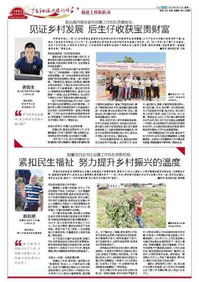 和很多年轻人一样,95后的黄俊生被脱贫攻坚的相关纪录片和影视作品深深震撼,从中不仅对乡村振兴战略有所了解,也萌生了投身其中的想法,2021年7月,他如愿成为深圳派驻汕尾市陆河县东坑镇工作队的一员,“近三年来,我了解了乡村基层,见证了乡村发展,从我的队长和队友、工作组的领导前辈和当地的干部群众身上看到了拼搏、踏实和奉献,这些财富将一直激励着我向前。”黄俊生说。 救助困难家庭 守住防返贫底线 黄俊生是工作队里年纪最小的队员,主要负责走访联系各组团单位和镇村,做好后勤保障,协助招商引资等工作,也负责联系防返贫监测户。 防返贫工作听起来不像产业项目那样“高大上”,但却能挽救一个家庭,对此,黄俊生深有感触。有一次他负责联系的防返贫监测户因突发疾病陷入困境,一家人愁容不展。了解情况后,黄俊生立即跟进,确保落实相关政策后,又通过走访有关单位为他申请到5万元慈善捐款。“通过我们的努力,能够帮助到有需要的群众,甚至可以说挽救一个家庭,这让我非常难忘,也让我对于帮扶工作有了更高的责任感和使命感。” 除了守护防返贫底线,和工作队一起守护交通安全线的事情也令他印象深刻。大路村和大溪村的两座桥因年久失修就被认定为危桥,但因种种原因一直难以得到修缮,“工作队成功申请深汕指挥部帮扶资金,帮助重修了这两条民生桥,村民出行再也不用提心吊胆了。”黄俊生说。 多参与多学习 积累人生宝贵财富 驻镇以来,黄俊生经常走村入户,对乡镇和基层工作有了更深的了解,也亲眼见证、亲身体会到乡村发展,这让他高兴又自豪。 “我们来了之后,助力东坑镇完成235国道配套市政设施建设、镇墟主要道路拓宽工程和村道硬底化,重修了两座民生桥,建成了寄宿制的东坑中学,推动镇村基础设施进一步完善,群众生活更加方便、安全。”黄俊生说,其中最令他开心的是东坑中学寄宿制学校建成投入使用。 原来,东坑中学10多年前曾有宿舍楼,但年久失修成为危房后,学生就无法住校,家长要么为孩子在周边租房,要么孩子就得奔波在路上。“全新的寄宿制学校建成后,学生可以有更多时间和精力投入学习,家长也不用担心孩子的安全。”黄俊生说。 作为队里最年轻的队员,黄俊生始终把自己放在学习的位置上,在日常工作、生活中,通过参与、观察,不断汲取发展的养分,努力成长着。“队长、驻村第一书记和其他队员工作经验较为丰富,能力突出,我从他们身上学到了很多,包括工作方法、为人处事。”黄俊生说,比如,工作队牵头调研发展光伏产业时,深入农户光伏安装企业掌握第一手资料,充分发挥深圳干部市场化思维和务实作风,为当地决策发展当好参谋,顺利推进项目落地,打开产业发展新局面。 “他们拼搏奋进的工作态度、踏实肯干的工作作风、在平凡岗位的奉献精神,让我感触很深。这是我三年驻镇帮扶工作中最宝贵的财富,将激励着我不断向前。”黄俊生说。 “学习脱贫攻坚精神,奋力跑好乡村振兴接力棒!”——黄俊生 黄俊生 驻汕尾市陆河县东坑镇工作队队员 派出单位:深圳市坪山区保安服务公司 ■采写:新快报记者 方轶