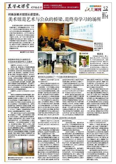 在城市建设进程中,美术馆作为美育传播的窗口,发挥着重要的作用。不仅对个人的成长有着积极的影响,也对社会文化的发展和进步具有重要意义。通过美术馆的美育活动,人们可以更好地理解艺术、文化和生活,形成更加全面和丰富的人生观。在广州市文联与新快报收藏周刊联合推出的“美学大课堂”上,何香凝美术馆馆长蔡显良深入地畅谈了美术馆的美育功能以及美育的意义,他说,美育对于构筑人的精神世界、培育社会良好风尚、提升整体审美水平,具有极其重要的作用。 将美育和传统文化紧密结合 全面提高审美眼界和人文素养 收藏周刊:在您看来,什么是美? 蔡显良:美, 是能引起人们美感的事物属性,也是使人感到心情愉悦的主观感觉。美其实没有标准,也没有共识,苏格拉底就说,想要说清什么美,是困难的。但爱美是人的天性,真、善、美是人类的基本价值追求。叔本华认为,人具有内在的悲剧性,解脱的方法,就是追求审美。世界处处充满美,只要想去欣赏,就一定能感受到这个世界的美。因此才有美学家认为,人生有四种境界:欲求境界、求知境界、道德境界、审美境界,审美为最高境界。正如周作人在《北京的茶食》里所说,我们在日常必需的东西以外,必须还要有一点无用的游戏与享乐,生活才有意思,而且是愈精炼愈好。 收藏周刊:在您眼中的审美教育又是怎样的呢? 蔡显良:审美教育旨在培养审美意识,提升对美的感知、欣赏和创造能力,通过耳濡目染、潜移默化的教育,达到美化人们心灵、行为、语言、体态和提高人们道德与智慧的目的。它不仅仅局限于艺术领域,还包括对自然美、生活美、社会美等各个方面的理解和认识。这种体验能够丰富人的精神生活,提高生活质量,并促进社会的和谐发展。审美教育,要坚持以美育人、以文化人,立德树人,将美育和传统文化紧密结合,全面提高审美眼界和人文素养。 早年,潘光旦先生认为近代以来的所谓教育,没能跳出三个范围:一是平民教育或义务教育,目的只在普及;二是职业教育与技能教育,只是教人学些吃饭本领;三是人才教育,不过是培养专家和文官。这三种教育离做人之道还“离得很远”。他主张教育应该培养“士”的情志。朱光潜先生也提出:“要求人心净化,先要求人生美化。”当代社会,物欲横流,人不但要是非分明,更要能够区分美丑。人不但要有智商,情商,还要有审美之商。快乐主义不应该只是享乐主义,而应该是高级的、审美的、文化的精神生活。因此,美育对于构筑人的精神世界、培育社会良好风尚、提升整体审美水平,具有极其重要的作用。 美术馆为公众提供了一个沉浸式的审美体验空间 收藏周刊:在美的传播中,美术馆充当怎样的角色? 蔡显良:美术馆作为城市的文化客厅、社会的美育课堂,是艺术与公众之间的桥梁。它不仅传播美,还促进了艺术的普及、教育、保护和创新,对社会文化生活有着深远的影响。在美的传播中,美术馆应充分发挥平台资源作用:美术馆是艺术品的主要展示场所,通过展览让公众能够近距离接触和欣赏各种艺术作品;美术馆提供了一个学习和教育的平台,通过导览、讲座、工作坊等形式,帮助公众了解艺术史、艺术理论和艺术技巧;美术馆是文化交流的重要场所,它不仅展示本国艺术,还引进外国艺术作品,促进不同文化之间的交流与理解;美术馆还负责收藏和保护艺术品,确保这些文化遗产得以保存并传承给后代;美术馆与学者、研究人员合作,进行艺术作品的研究和学术探讨,推动艺术学科的发展;最后,美术馆为公众提供了一个沉浸式的审美体验空间,让人们在欣赏艺术的同时,也能体验到艺术带来的情感和精神上的触动。 收藏周刊:作为美育传播的窗口,美术馆如何发挥该有的美育传播功能?何香凝美术馆是如何实践的? 蔡显良:美术馆不能坐井观天,要走出去,走进观众,送展上门,最大限度地提升社会效益,扩大影响范围。近年来,何香凝美术馆推出“走进”系列项目:与南方科技大学、中国科学院深圳理工大学(筹)、华侨城小学等院校开展馆校合作,让艺术走进校园;与深圳新一代产业园、深圳市南山区蛇口新玺社区等园区合作,致力于打破“观众来到美术馆”的观展模式,尝试让艺术作品“主动”进入群众的生活空间,让艺术走进社区;持续推进与华侨城物业集团公司携手举办的“何香凝艺术走进乡村公益行动”,捐建“乡村艺术图书馆”,让艺术走进乡村。我们通过“走进”系列项目,发挥美术馆在城市文化建设中的应有作用。 同时,我们持续开展学术性与艺术性结合的高品质展览,以最大热诚、学术力量及资金积极筹划以传统文化为核心的“引进来”项目,与南京博物院、北京画院等文博机构、美术馆达成合作意向,在大湾区构建起系统“区域文化艺术”展示。经过四年的项目运作,系列展览取得巨大成功,社会效益显著,已在深圳打造出中国传统书画艺术高端展览的平台,更大范围地实现了藏品活化和文化惠民。 此外,我们通过形式多样、定位多元的公教活动,增强美术馆与外界的互动与交流,丰富市民生活,推动市民审美素养的整体提升。 鼓励人们不断学习和探索,保持好奇心和求知欲 收藏周刊:随着市民大众越来越喜欢到美术馆看展,对于美术馆人的工作来说,随之迎来了哪些新的时代要求? 蔡显良:新的时代对美术馆人的工作提出了更高的挑战,我们需要