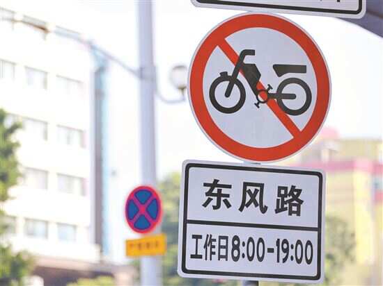■东风东路上的禁行标志。新快报记者 郭思杰/摄 |