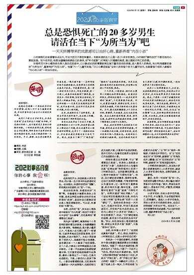 总是恐惧死亡的20多岁男生 请活在当下“为所当为”吧
