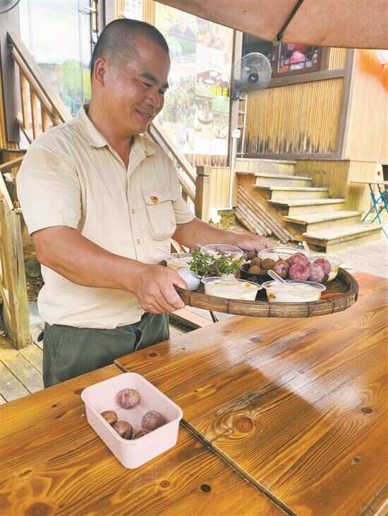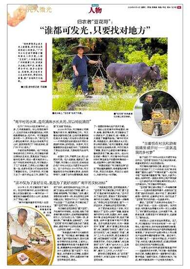 “我的梦想是让家乡走上致富路,回乡创业是我的初心和使命。”广州市从化区南平静修小镇的新农人刘文银,人称“豆花哥”,十年前放弃在广州的高薪工作,回到家乡办起土特产店、电商水果合作社、徒步公益协会、民宿等,努力改变自己生活的同时,带动村民致富,推广当地的文化地标。 “南平村的水果,是吃清泉水长大的,所以特别清甜” 位于广州市从化区的南平村,山多,几乎都是梯田。环山而居的南平人,过去并没有太多致富的机会,村民倒是看准机会,往外冲。刘文银就是其中的一个,那年他19岁,“我们五代人都住在南平村,我也从没有离开过山村,直到我报考了广州机电学校,到广州(市区)读书。” 外面的世界很精彩。在广州机电学校读书的三年时光,刘文银每天都过得快乐且充实,更是坚定了他在大城市往前冲,闯出一番天地的决心。在广州电机学校毕业后,刘文银进入了工厂设备部,工资收入比同龄人要高一些,在家乡的发小们也纷纷投来了羡慕的目光。工作多年后,刘文银又去了一家外资企业工作,获得了出国“见世面”的机会。 从2016年开始,刘文银被公司频繁地外派日本、德国等地工作。刘文银告诉新快报记者,让他印象最深刻的是日本当地人对垃圾分类的执着——不同类型的垃圾规定在不同的日期进行收纳,定时投放。休息时,刘文银最喜欢去逛当地的乡村,“它既保持了原生态的环境,又拥有现代生活气息。” 在国外工作,开眼界之余,收入亦颇为可观。但人在旅途,离家远了,除了想家,刘文银心心念念的,还有他创办的广州市从化区众兄园艺专业合作社。这个合作社从2014年开始,刘文银就担任合作社理事长职务,在他的带领下,完善了合作社管理制度,制定了一套荔枝标准化生产技术方案。 地处山区的南平村种有荔枝、柿子、杨梅、黄皮等水果,刘文银联合了10多家农户,互通有无,统一销售,大大提高了销量和效能。“南平村的水果,早晚温差大,是吃清泉水长大的,所以特别清甜。”在刘文银看来,向游客介绍好这些地标水果,不仅仅是为了销售,更在于让游客对南平静修小镇有更多的了解,融入其中。在从化区的统一筹划下,刘文银与合作社的伙伴们将各家各户的荔枝树集结在一起,在挂牌中心进行预订销售。 “我要在现场!”刘文银的这种“归农”想法越来越强烈,他希望能为南平代言,用自己的服务,用自己公益的心,为家乡作出一份贡献。 “这不仅为了卖好豆花,更是为了更好地推广南平的文化地标” 2019年8月,刘文银回到了南平村。而这时的南平村,在乡村振兴的路上亦发生着巨变——南平村由一个曾经较为偏僻落后的小山村,变身成为了“网红小镇”。 “南平村越来越多的年轻人也回到了农村,有的回来在村社企工作,在家门口就业;有的创办了民宿、餐厅、小卖铺、做电商等。”刘文银说,“当年,像大多数的返乡青年一样,我也思考过各种问题,比如,‘我回乡干什么?’‘如何才能干出名堂?’”几经思索,刘文银办起了“荔下豆花”项目,结果火了。 刘文银的豆花店取名“荔下豆花”,开在南平村手信街。在店里,他贴了很多南平景点的照片,还有两面彩旗特别吸引人,它们分别上书:“回眸一笑,多谢关照。”“南平最美,全赖有您”。人称“豆花哥”的刘文银把这里办成了游客驿站,游客问有什么好玩的地方,有什么好吃的,他都一一介绍。 “我希望成为南平文化地标的推广者,”刘文银说,南平静修小镇是来了就不想走的地方,因为它拥有非常好的生态环境,三面环山,森林覆盖率和负离子含量都非常高,是健康养生休闲游的好选择。为什么要取名“荔下豆花”?刘文银说,农民喜欢交叉种植,在荔枝树下种黄豆。同时,在荔枝树下做豆花和卖豆花,故名。 “我就是豆花哥,豆花哥就是我。”“豆花哥”刘文银正致力于把‘荔下豆花’打造成南平的地标产品,“这不仅为了卖好豆花,更是为了更好地推广南平的文化地标。”刘文银进一步解释说,“我想让吃豆花的游客,留下一个好豆好水,才能做出好豆花的印象。” 为了更好地实现这个目标,刘文银设计了“豆花+土特产”套餐,里面有南平的时令水果,如荔枝、柿子、杨梅、李子等,还有各种当地干果,组成了颜值高、品种丰富的南平特产竹箕套装。名字也是甚为讲究,比如一碗装的叫“寂寞”,意为“寂寞让我如此美丽”;有二碗装的“如初见”,意为“人生若只如初见”;有三碗装的“灵魂”,意为“三人行必有我师,遇见有趣的灵魂”;有四碗装的“大四喜”,意为“人生得意须尽欢,尽在礼乐静美”;有五碗装的“五行”,意为“金木水火土,各美其美,美美与共”;有六碗装的“六六大顺”,意为“三三不尽,六六无穷”…… 新快报记者留意到,在“豆花哥”的带领下,村里已经有十多户做起了豆花生意。 “当喜悦在村民和游客眼睛里盛开时——这就是我的乡村梦” 除了创办了广州市从化区众兄园艺专业合作社,“豆花哥”还创办了合力徒步俱乐部,希望有更多的人关注田园生活。 刘文银告诉新快报记者,通过这个平台,至今已经组织了二三十次活动,比如“徒步走清溪”“荔枝公益行”“竹筒丰收宴”“一起打柿子啦”“拍好南平摄影秀”等,“每次,大家开心地玩,结束时把一袋袋水果和土特产带回家……让大家在行走中沉浸在南平村的山水人文风物当中。”刘文银乐呵呵地说。 “豆花哥”跟记者分