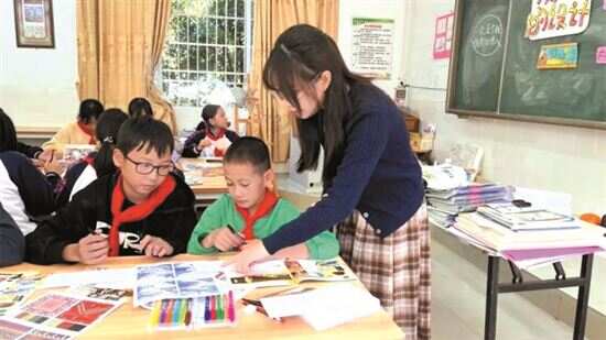 ■华南师范大学教研团队成员以“连南千年瑶寨——参观券的设计”开展美术绘画课。 |