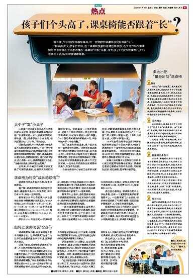 眼下孩子们平均身高越来越高,但一些学校的课桌椅却没有跟着“长”。 “新华视点”记者采访发现,由于课桌椅国家标准滞后等原因,不少地方存在课桌椅与学生身高不大匹配的情况;课桌椅“低配”现象,成