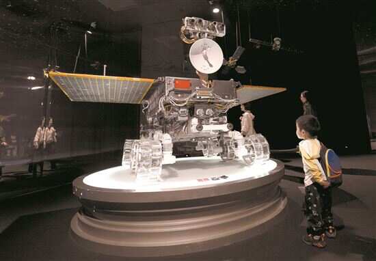 6月8日,小朋友在上海喜玛拉雅美术馆参观无穹航天展。