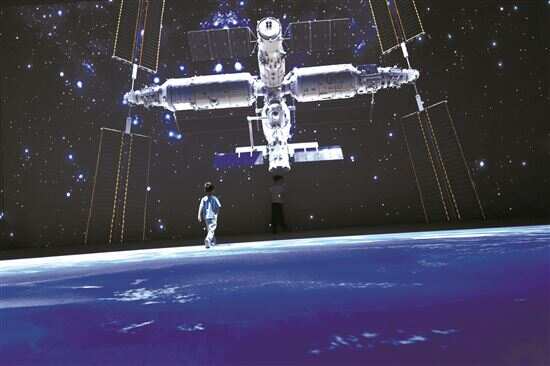 6月8日,小朋友在上海喜玛拉雅美术馆参观无穹航天展。 当日,“无穹——中国·航天沉浸艺术展”在上海喜玛拉雅美术馆开展,吸引了许多观众前来参观,沉浸式体验“太空之旅”。 新华社发