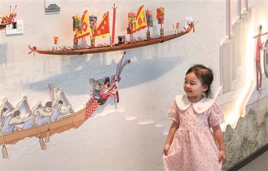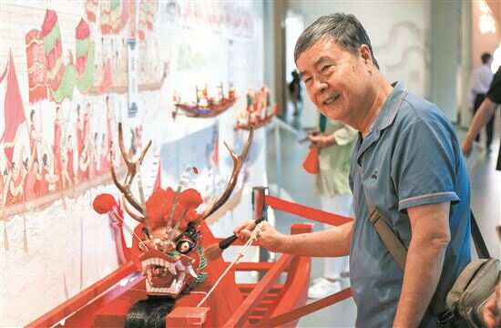 ■游客在“山海之间”展厅体验与龙舟的互动。 |