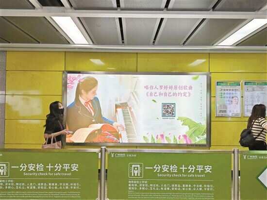 ■在地铁市二宫站,一名唱作人投放个人广告为原创歌曲进行宣传。 新快报记者 李佳文/摄 |