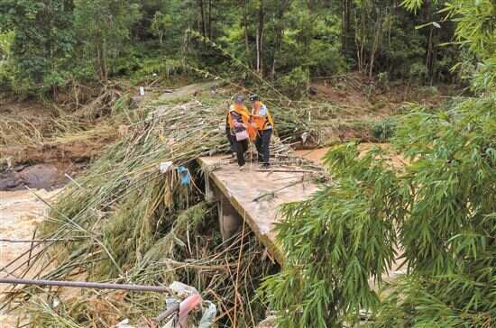 6月17日下午,在梅州平远县仁居镇五福村,有树木淤泥堵住村民家通道,民警第一时间将受灾群众转移至安全区域。通讯员供图