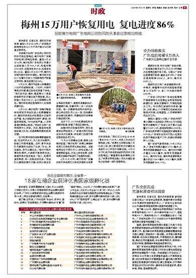 梅州15万用户恢复用电 复电进度86%