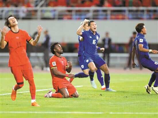 ■国足在对泰国的比赛中罚失点球。新华社发 |