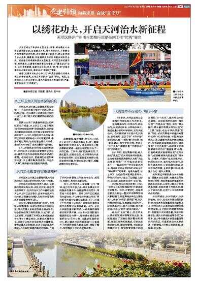天河区获评广州市全面推行河湖长制工作“优秀”等次 天河区经过7年多的攻坚治水,河涌、湖泊等大小水体全面消除黑臭,全面建立河长、湖长责任体系,不断健全河湖管理和保护机制,水环境质量不断提升,群众享受到了治水成果,猎德涌、车陂涌等成为市民游憩休闲的好去处。在这场没有硝烟的碧水攻坚战里,天河区坚持党建引领、科学谋划,从建管并重到常态化管理,以“绣花功夫”治水,优化资源配置,组建专业队伍,形成“建、管、控”并驾齐驱的治水联动体系,推动治水“精细化”管理。 据悉,近期市河长办公布2023年度全面推行河湖长制工作考核结果,天河区再次获评“优秀”等次。现在,让我们以水上环卫为窗口,看天河如何努力打造科学、严谨、高效的治水“天河模式”。 水上环卫为天河治水保驾护航 天河区水上环境卫生管理所是全市唯一一个在水务部门领导下的水上环卫机构,让每一位从事水上环境卫生工作的一线工人有了极大的归属感和由衷的自豪感。 荣获2022年广东最美河湖卫士的何虹所长介绍道,水上环卫工人每日按照“定员定岗定船定责”的保洁原则,对河面不间断地巡回保洁,他们每日保洁的时间都不低于12小时,不留任何卫生死角;暴雨过后河面通常能在一天内恢复正常,最多不超过两天;垃圾处理也是日产日清,是他们牢牢守住了治水的最后一道防线。 6月,为确保龙舟民俗活动顺利进行,天河区水上环境卫生管理所全员出动,提前对龙舟活动现场周边水域进行清理。在活动当天,更是增加巡逻和保洁力度,水上清洁艇来回游曳,与龙舟“共舞”,保持着水域的整洁和美观。 在猎德涌,每天清晨5时25分,30名水上环卫工人准点到集合点,统一着装醒目字样“天河水务”。班长带领工人整齐清晰地背诵一遍安全制度后开始了一天的忙碌。工作中,他们既是保洁员、又是巡查员、还是安全员,在对河涌内外进行保洁的同时,还巡查检查沿岸排口是否有排污问题,时刻关注岸上情况,提醒游憩市民注意安全。 天河治水彰显务实奋进精神 天河区水上环境卫生管理所是天河治水的标兵,也是众多天河水务人的一个缩影。 天河区水务局相关负责人表示,全面推行河湖长制以来,在区总河长、副总河长的带领下,在天河治水工作中磨砺出的不止水上环卫这支标兵,还有专业技术化的水务工程建设先锋队及给排水管理和水务设施管养等守卫队。 2019年,借助机构改革“东风”,天河区从统筹规划、系统治理的治水实践出发,深入把握水务系统的难点痛点弱点,结合机构改革方向和思路,对症下药,成立水务局,并组建了天河区水务设施建设中心等4个事业单位,完善治水管理体系,突破了以往水务系统技术力量薄弱、管理力量不足的瓶颈,补齐了组织架构不健全、人员临时抽调不稳定的短板,开启了天河水务管理工作走向专业化、规范化、制度化、标准化的新征程。 如今,天河水务人发扬着“三牛”精神,奋力书写水务人生,做水务事业中为民服务的孺子牛、创新发展的拓荒牛、艰苦奋斗的老黄牛。目前,天河区已建成节水型社会,并上榜于水利部公布的“第六批节水型社会建设达标县(区)”,打造了广州市首个以污水厂为载体打造的省级节水教育社会实践基地。此外,全区水环境质量不断向好,30条黑臭河涌持续实现不黑不臭,2023年水质指数提升幅度排名全市第一,海绵城市建设达标面积达60平方公里、占建成区面积的59%,累计建成市区两级碧道59公里提升了河涌两岸绿色廊道品质,消除了暨大、岗顶等多个历史水浸黑点等。 天河治水不忘初心,笃行不怠 7年多来,天河区坚持以全面推行河湖长制工作为抓手,坚持精准治污、科学治污、依法治污,以流域为体系、以网格为单元,通过定量分析和科学研判,实行系统治水。在不断探索与实践中扎实推进、砥砺前行,经历了似“十月怀胎”般的调研、像“一朝分娩”的决策、如“新生婴儿”般守护的历程,形成了“六个关系”“建管并重”“污涝共治”的“天河模式”。 2017年初,面对黑臭不堪、被人称为“黑龙江”的天河母亲河车陂涌,业内有专家现场考察时认为是“无法治理的河涌”“不可能完成的任务”……“路在何方?”时任区副总河长、现任区总河长用实际行动给出了“路在脚下”的答案。他率先垂范、以上率下,主动担任车陂涌区级河长,带领天河治水人踏上了边调查、边研究、边实践、边探索的治水“长征”路。 天河区河长办相关负责人介绍:“总河长心系车陂涌是我们大家都有目共睹的。当时,不管多忙,他每周总要至少抽出一整天时间带领区相关职能部门、街道等相关单位主要负责人,拿着“水系图、管网图”等,深入河涌关键角落,实地调查,现场分析、研究黑臭状况,提不出问题、找不到症结、开不出‘药方’就决不罢休。” 在治水“长征”路上,区总河长从具体的区情水情等实际出发,系统性提出了正确处理好整体和局部、单项工作和系统集成、任务完成和成效体现、建设和管理、市区联动和事权分工、科学和管用等水环境治理的“六个关系”,是天河治水的总纲领。在车陂涌率先践行“清污分流”“污涝共治”理念,实行“源头减污、源头截污和源头雨污分流”的“三源”治理,在全市率先开展“四洗”行动,试点开展城中村截污纳管和支涌(渠)清污分流,车陂涌治水模式入选全国城市黑臭水体治