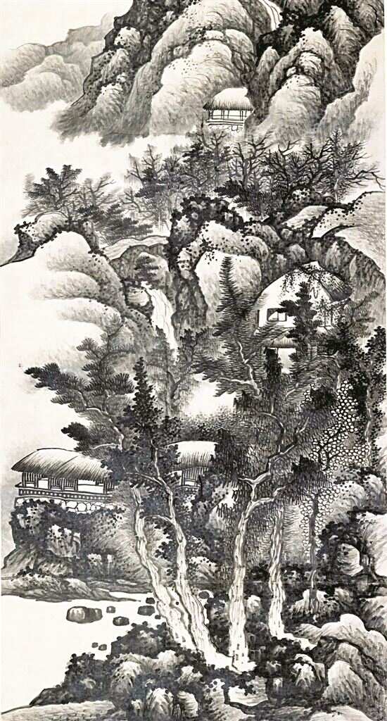 ■(清)龚贤《云山结楼图》局部 广州艺术博物院藏 |