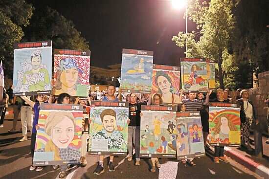 7月6日晚,以色列民众在耶路撒冷举行大规模集会游行,要求以色列政府在加沙地带停火,与巴勒斯坦伊斯兰抵抗运动(哈马斯)达成协议,促使被扣押人员尽快得到释放。新华社发