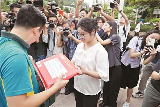 ■载有4份高考录取通知书的无人机从华南理工大学启航,约30分钟后缓缓降落在黄埔区长岭街道万科山景城。 |