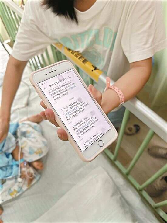 ▶市民展示医院推送的手术情况动态信息。 |