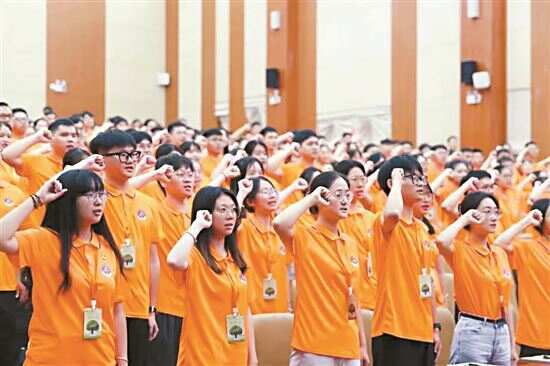 新快报讯 记者杨英杰报道 “我志愿成为一名人民教师,忠诚党的教育事业,遵守教育法律法规,履行教书育人职责,引领学生健康成长……”7月16日,2024年东莞市中小学(幼儿园)见习教师规范化培训(以下简称“规培”)第一课开讲,1801名新教师庄重宣誓,开启职业生涯新征程。 围绕教育强国、城市特点、东莞教育、莞邑良师四个维度,东莞市委教育工委副书记、市教育局党组成员甘雨以《迈开脚步、追逐梦想,共同绘就东莞教育新画卷》为题,为新教师开讲,勉励新教师叩问初心,思考为什么做老师、想当什么样的老师、怎样当好老师,在东莞成就教育未来。 为帮助新教师实现岗前快速成长,完成从学生向老师的过渡,尽快站稳、站好讲台,2018年3月,东莞推出了见习教师规范化培训,这是全国第二个施行见习教师规范化培训的城市。 为见习教师量身定制培训方案,规培是东莞的强师之举,也是教育的创新诠释,今年共有1801名新教师参加规培。课堂伊始,甘雨回顾一年多来东莞教师招聘走过的历程,欢迎新教师加入东莞教育大家庭。 规培第一课,从国家大政方针的全局看教育,也从东莞教育历史与现状、优势与挑战切入,助力新教师了解东莞教育、走进东莞教育。通过“时代楷模”张桂梅老师、东莞名家杨宝霖老师等案例、视频穿插讲述,勉励新教师坚持“四有”标准,做新时代良师,迈开脚步、追逐梦想,共同绘就东莞教育新画卷。 作为新教师入职前的重要培训,六年来东莞共有5600余名见习教师顺利结业,通过规培实现岗前成长蝶变。