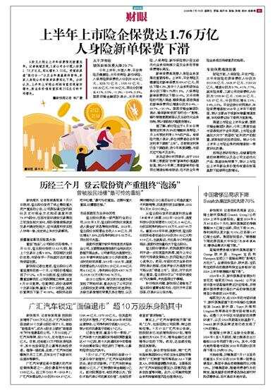 上半年上市险企保费达1.76万亿 人身险新单保费下滑