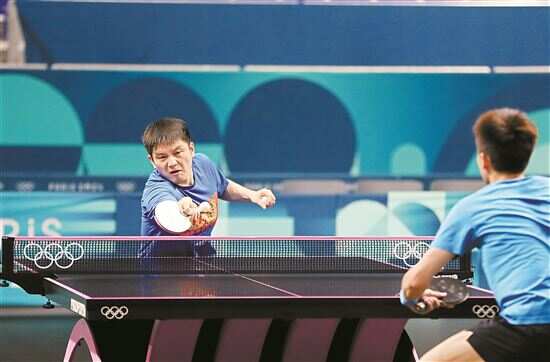 ■7月22日,樊振东在训练中。当日,中国国家乒乓球队在南巴黎竞技场进行赛前训练。巴黎奥运会将于26日开幕,乒乓球项目将于27日迎来首个比赛日。新华社发