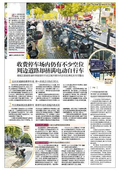 增城区荔城街道称将继续针对该区域开展非机动车乱停乱放专项整治 近日,新快报记者接到广州市增城区市民投诉称,位于增城广场地铁站E出口附近的一块公共区域被设置成了收费的电动自行车停放场。新快报
