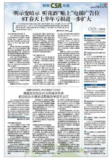 明示变暗示 听花酒“贴上”电梯广告位 ST春天上半年亏损进一步扩大