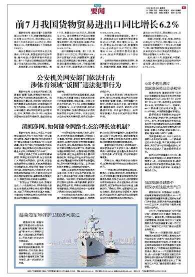 据新华社电 海关总署7日发布数据:2024年前7个月,我国货物贸易进出口总值24.83万亿元,同比增长6.2%。其中7月当月进出口3.68万亿元,同比增长6.5%,月度增速连续4个月保持在5%以