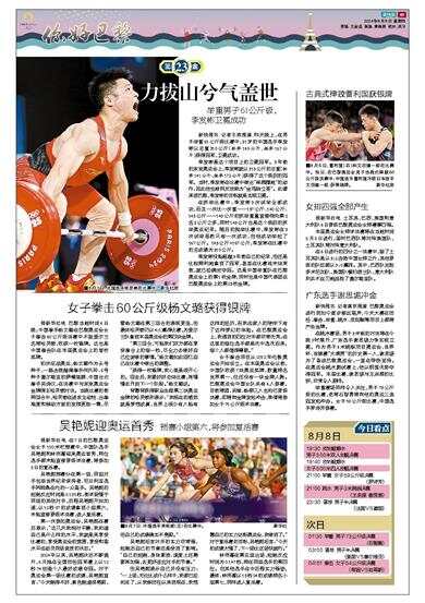 8月8日 19:30 皮划艇静水 男子500米双人划艇决赛 19:40 皮划艇静水 女子500米四人皮艇决赛 21:00 举重 女子59公斤级决赛 (罗诗芳)