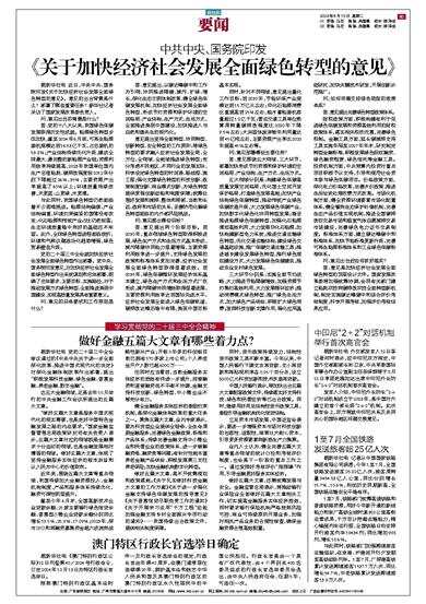 中共中央、国务院印发《关于加快经济社会发展全面绿色转型的意见》