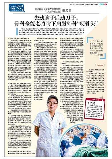 南方医科大学第三附属医院肩肘外科主任 王义隽 “我是一个对自己很苛刻的人。”南方医科大学第三附属医院肩肘外科主任王义隽1.82米的大高个,说话中气十足,走路带风,颇有外科专家的风骨。