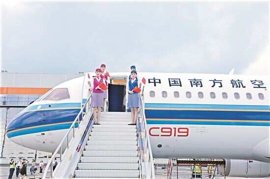 9月19日将正式执飞广州-上海虹桥航线 新快报讯 记者李佳文报道 8月29日10时15分,中国南方航空(简称“南航”)编号为B-919J的首架C919飞机平稳降落在广州白云国际机场,受到航空界的最高礼仪“水门礼”迎接。这标志着南航首架C919飞机调机首秀飞行取得圆满成功。 南航已与中国商飞签署100架C919飞机购买协议 C919大型客机是我国按照国际通行适航标准研制、具有完全自主知识产权的全球新一代单通道干线客机。首架C919飞机除采用南航机队经典涂装外,机身前部清晰标注大大的红色“C919”字样。南航首批运营的C919飞机,采用三舱布局模式,公务舱、明珠经济舱和经济舱共配置164个座位,客舱整体空间开阔宽敞。 目前,南航已建立完善的C919飞机保障体系,制定了详细的运营方案。预计南航首架C919飞机将在9月中旬完成演示验证,获得商业航班运行资格,9月19日将正式执飞广州-上海虹桥航线。 据了解,今年4月,南航已与中国商飞签署了100架C919飞机购买协议,并计划于2024年至2031年分批交付。为确保安全高效运行,南航今年新引进的C919飞机,将布局在保障能力最强的南航主基地广州,飞行航点将覆盖从广州始发至北京、上海、成都、西安等城市。未来随着机队规模扩大和运行经验积累,南航逐步将C919机型投放到分子公司运营。 南航C919主用的“天极”系统为自主研发 据了解,南航是首家使用自研系统管理C919飞行计划的航空公司,南航C919飞机上主用的“天极”系统为自主研发,拥有自主知识产权。“天极”系统除制作飞行计划以外,还提供C919飞机起飞着陆在线性能计算功能,进一步提升计算精确度,提高业载量。 此外,“天瞳”系统是南航全权自主研发的飞机健康管理系统,是世界唯一一套能够兼容波音、空客、国产飞机的健康监测系统,能够提供实时状态监控、故障诊断、预测性维护和数据驱动的决策支持,提高飞机的安全性、可靠性和维修效率。在C919国产大飞机交付前,南航机务提前与商飞开展技术对接,确保南航天瞳系统国产大飞机模块早日具备上线标准。待测试成功后,计划将天瞳系统在南航所有C919国产大飞机全覆盖上线使用。