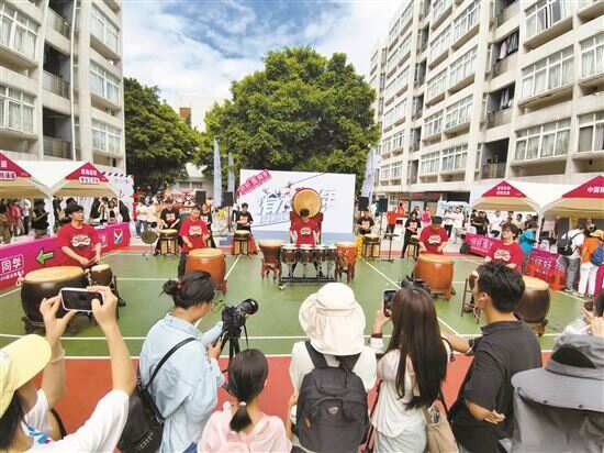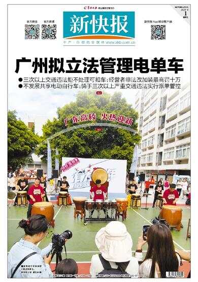 ■星海音乐学院敲锣打鼓迎接新生。 新快报记者 龚吉林/摄