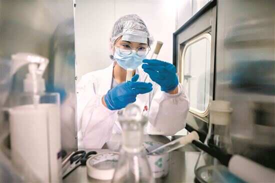 ■广东双洋食品科技有限公司化验室,工作人员正在对罗非鱼原料进行自检。 |