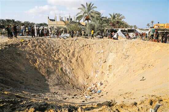 ■9月10日,在加沙地带南部汗尤尼斯马瓦西地区,民众查看以军袭击后的现场。新华社发 |