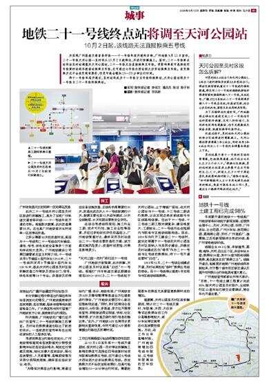 地铁二十一号线终点站将调至天河公园站