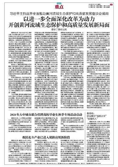 蔡奇丁薛祥出席 据新华社电 中共中央总书记、国家主席、中央军委主席习近平12日下午在甘肃省兰州市主持召开全面推动黄河流域生态保护和高质量发展座谈会并发表重要讲话。他强调,要认真贯彻党的二十大和二十届三中全会精神,牢牢把握重在保护、要在治理的战略要求,以进一步全面深化改革为动力,坚持生态优先、绿色发展,坚持量水而行、节水优先,坚持因地制宜、分类施策,坚持统筹谋划、协同推进,促进全流域生态保护上新台阶、绿色转型有新进展、高质量发展有新成效、人民群众生活有新改善,开创黄河流域生态保护和高质量发展新局面。 中共中央政治局常委、中央办公厅主任蔡奇,中共中央政治局常委、国务院副总理丁薛祥出席座谈会。 座谈会上,国家发展改革委主任郑栅洁、甘肃省委书记胡昌升、陕西省委书记赵一德、河南省委书记楼阳生先后发言,就推动黄河流域生态保护和高质量发展汇报工作情况、提出意见建议。参加座谈会的其他省区主要负责同志提交了书面发言。 听取大家发言后,习近平发表了重要讲话。他指出,党中央提出黄河流域生态保护和高质量发展战略以来,黄河流域生态环境质量稳步提升,水安全保障能力持续增强,能源粮食安全基础不断巩固,高质量发展亮点不少,黄河流域生态保护和高质量发展站到了更高起点上。同时也要看到,仍有不少难题需要进一步破解。 习近平强调,要持续完善黄河流域生态大保护大协同格局,筑牢国家生态安全屏障。更加突出黄河治理的系统性、整体性、协同性,推动构建上下游贯通一体的生态环境治理体系,深入实施重要生态系统保护和修复重大工程,提升流域生态系统稳定性。强化“三北”工程联防联治,提升整体效果。加强采煤沉陷区综合治理,积极探索资源型地区转型发展新路径。持续深入打好污染防治攻坚战,加强重要支流和重点湖库治理,搞好沿河环湖地区环境基础设施建设。强化大气污染综合治理,加快重点行业超低排放改造,大力推进煤炭清洁高效利用。依法整治“散乱污”企业,有效管控风险源。实施支持绿色低碳发展的财税、金融、投资、价格政策和标准体系。健全生态产品价值实现机制。探索建立全流域、市场化、多元化生态保护补偿机制。 习近平指出,要实施最严格的水资源保护利用制度,提高水资源节约集约利用水平。严守水资源开发利用上限,细化以水定城、以水定地、以水定人、以水定产举措,健全覆盖全流域的取用水总量控制体系,科学配置干支流水资源。强化地下水水位管控,加大中下游地下水超采漏斗治理力度。加强饮用水水源地保护。稳步优化调整“八七”分水方案。积极探索和规范推进水权交易,全面推行水资源费改税。实施节水行动,加快建设节水型社会。 习近平强调,要完善防灾减灾体系,全力保障黄河安澜。健全水沙调节机制,完善以骨干水库等重大水利工程为主的调控体系。坚持干支流统防统治,推进干流重点河段、险工险段治理,保障重要堤防水库和基础设施安全。统筹推进黄河水利枢纽重大工程。加强灾害监测预警,强化预警和应急响应联动。加大查险排险力度,加强防灾减灾宣传教育和常态化、实战化协同动员演练。 习近平指出,要推动发展方式全面绿色转型,建设特色优势现代产业体系。毫不放松抓好粮食和重要农产品生产,强化农业科技和装备支撑,发展农业适度规模经营,因地制宜发展特色优势农业。建设旱涝保收的高标准农田,抓好盐碱地综合改造利用,努力提高耕地质量。优化重大项目建设布局,最大程度降低对地表径流、地下水的影响。大力发展绿色低碳经济,有序推进大型风电光伏基地和电力外送通道规划建设,加快重点行业清洁能源替代。着力提高产业科技创新能力,推动重点行业节能降碳改造和设备更新,壮大战略性新兴产业、先进制造业集群,因地制宜发展新质生产力。鼓励区域内高校、科研院所等布局建设技术转移和产业化服务机制,提高产业链创新链协同水平。 习近平强调,要全面深化改革扩大开放,为高质量发展增添动力。深度参与全国统一大市场建设,坚决破除各种形式的地方保护主义。深化国资国企改革,全面落实促进民营经济发展壮大的政策举措。构建优势互补的区域经济布局和国土空间体系,特大城市要走内涵式发展之路,沿黄城市群要提升人口集聚和产业协作能力。完善交通、能源、水利等跨省区重大基础设施体系,推进新型基础设施建设。加强与其他区域战略的对接,促进自由贸易试验区建设协调联动。积极参与高质量共建“一带一路”,以高水平对外开放拓展发展空间。 习近平指出,要统筹新型城镇化和乡村振兴,稳步增进民生福祉。引导大中小城市和小城镇协调发展、集约紧凑布局,提升县城产业和人口承载能力,减轻生态脆弱区的承载压力。更好发挥县城连接城市、带动乡村作用,率先在县域内实现城乡融合发展。分类推进村庄建设,建设宜居宜业和美乡村。加强普惠性、基础性、兜底性民生保障。把就业摆在突出位置,城镇产业发展和乡村产业培育都要重视扩大就业容量。巩固拓展脱贫攻坚成果,防止规模性返贫致贫。全面贯彻新时代党的民族工作大政方针,深化民族团结进步创建,依法治理民族、宗教事务,铸牢中华民族共同体意识。 习近平强调,黄河流域是中华民族和中华文