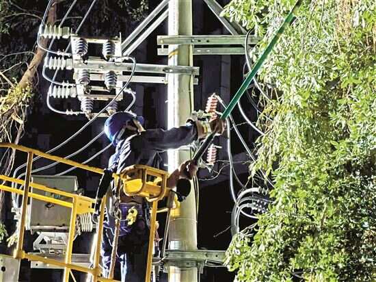 ■南方电网广东广州供电局抢修人员争分夺秒,快速抢修复电。 |