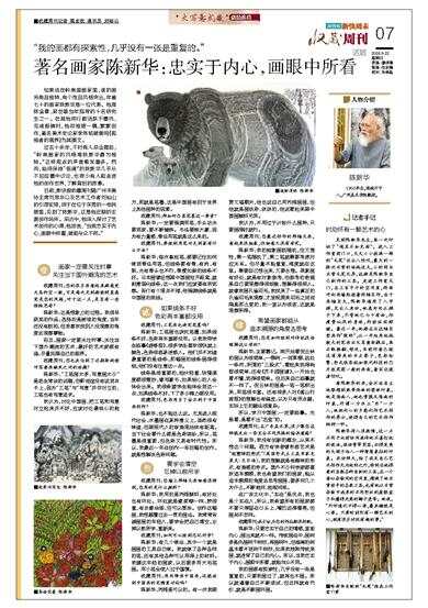 “我的画都有探索性,几乎没有一张是重复的。” ■收藏周刊记者 梁志钦 通讯员 刘裕山 如果说在岭南国画家里,谁的画另类且独特、有个性且风格突出,年逾七十的画家陈新华是一位代表。他是陈金章、梁世雄当年指导的十名研究生之一。在其他同行都活跃于圈内、见诸报端时,他却独居一隅,默默创作,著名美术史论家李伟铭就曾用《孤独者的境界》为其撰文。 过去十余年,不时有人总会提起,“岭南画家的风格唯陈新华最为独特。”这样观点的声音愈发增多。然而,始终保持“低调”的陈新华几乎从不回应圈中议论,也很少有人能走进他的创作世界,了解背后的故事。 日前,新快报收藏周刊随广州市美协主席刘思东以及艺术工作者刘裕山的引荐安排,终于在位于东莞的一栋民居里,见到了陈新华,这是他近期的主要创作场所。采访中,他深入探讨了艺术创作的心得,他坦言,“当我忠实于内心,画眼中所看,就能与众不同。” 壹 画家一定要关注时事 关注当下国外潮流的艺术 收藏周刊:您的很多画看起来都感觉天马行空一般,可是每次见到都能明显感觉是您的风格,对于这一点,是否有一些特殊思考? 陈新华:这是想象力的过程。我很早获奖的作品,选择的是俯视的角度,当年还没有航拍,但我喜欢找别人没观察的角度去观察事物。 而且,画家一定要关注时事,关注当下国外潮流的艺术,最好的艺术家都有谁,尽量拓展自己的眼界。 收藏周刊:您也关注到了近期靳尚谊对写意画缺失之问的话题? 陈新华:“工笔画太多,写意画太少”是老生常谈的话题,但靳尚谊没有说到点子上,因为“工笔”与“写意”并非对立的,工笔也有写意追求。 我认为,讨论中国画,把工笔和写意对立起来并不好,应该讨论最核心的地方,那就是笔墨,这是中国画有别于世界上其他画种的因素。 收藏周刊:那如何凸显笔墨这一要素? 陈新华:一定要强调用笔,手头功夫要到家,要不断锤炼。书法要练大篆,因为有力量感,骨法用笔就是这么来的。 收藏周刊:要做到用笔功夫到家有什么方法? 陈新华:每次拿起笔,都要记住如何做到骨法用笔,但线条要有骨、有肉、有筋,光有骨头也不行,骨瘦如柴的线条不好。日本画曾经想跟中国画拉开距离,就刻意弱化线条,这一点我们应该要有所觉察。张仃有个观点不错,他强调线条就是中国画的底线。 贰 如果线条不好 色彩再丰富都没用 收藏周刊:工笔画也讲究笔墨吗? 陈新华:工笔画也讲究笔墨,如果线条不好,色彩再丰富都没用。以前我带学生临摹《游春图》,很多学生喜欢很快就上颜色,色彩很容易迷惑人。他们并不知道最重要的是线条,那幅画的线条画得很细,他们没有注意这一点。 线条是很重要的,起伏轻重、快慢速度都很微妙,像写篆书,如果细心的人会体会出来。我很希望学生能体会到这一点,如果线条不好,下了多少精力都没用。 收藏周刊:色彩用多了会不利于中国画创作? 陈新华:也不能这么说。尤其进入现代社会,水墨画在某种意义上,虽然很有味道,但跟现代人的审美观始终有距离。当下社会看什么都是色彩缤纷,所以,笔墨是很重要,但色彩又具有时代性。所以,我最近一年在创作一张巨幅的创作,就是想解决色彩问题。 叁 要学会清空 忘掉以前所学 收藏周刊:您墙上那幅大画细看很特别,您用的是什么颜料? 陈新华:我用的是丙烯颜料,有好处也有坏处。坏处就是像浆糊一样,胶很重,有点像油漆,但可以厚涂。创作这幅画,我想颠覆过去一贯的画法。我常常告诫画画的年轻人,要学会把自己清空,忘掉以前所学,重新来。 收藏周刊:如何可以做到忘记所学? 陈新华:有几个做法,其中一个就是画画的工具自己做。我就做了各种各样的笔,还有其他各种可以用得上的材料。我建议年轻的画家,以后要多用大毛笔画。用小笔会使人过于谨慎。 收藏周刊:用丙烯画中国画,还能放到中国画的范畴里讨论吗? 陈新华:丙烯是可以的。有一次我跟贾又福聊天,他也说自己用丙烯画画,但他就是画淡彩,淡淡的,他说看起来跟中国画颜料无异。 我认为,不用过于计较什么画种,只要画得好就行。 收藏周刊:您最近创作的那幅大画,看起来很抽象,但细看又很有考究。 陈新华:我的抽象画既随机,但又理性,第一笔随机了,第二笔就需要考虑对应关系。但尽量不能重复,难度就在这里。需要自己想出来,又要合理。具象画有好处,就是有对象参考,但参考的前提是自己要观察得很细致,理解得很深入。就像我画孔雀羽毛,我找来了一些真正的孔雀羽毛来观察,才发现原来羽毛之间间隔是那么宽的,我一直以为很密,这就是观察所得。 肆 希望画家都能从 追本溯源的角度去思考 收藏周刊:您是如何做到对传统技法理解这么深的? 陈新华:主要靠记。刚开始看倪云林的画以为很简单,一棵树、一间草棚、远处一条河,所谓的“三段式”,看起来觉得构图很简单,还有《芥子园画谱》,一开始也看不懂,觉得很简单。但后来自己临摹就不一样了。倪云林的画是一笔一笔积出来,用笔很丰富。还有很多人对《溪山行旅图》的理解也有偏差,以为只有雨点皴,实际上它的皴法很复杂。 所以,学习中国画,一定要临摹。光是看,是看不出“名堂”的。 收藏周刊:在广东美术界,很少像您这样能走出一条完全不同风格的绘画道路? 陈新华:我没有创新的概念,从来不想这个问题。西方有学者曾形容艺术是“有意味的形式”(英国