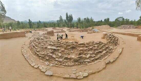 ■元宝山积石冢遗址发掘全景(资料照片)。 |